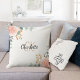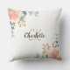 Coussin Rose or rose fleurie vert nom monogramme