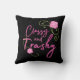 Amusez-vous lancer l'oreiller pour les femmes qui vivent à haute voix la vie à la campagne ! Design caractéristiques "Classy & Trashy" texte de script rose avec roses roses sur arrière - plan noir,