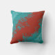 Coussin graphique contrastant de jet de mer de brun et d'aqua. Original conçu par Sarah Trett.