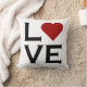 Aimez écrit au texte décoratif avec le texte noir audacieux et à un grand coeur rouge sur un arrière - plan blanc. Imprimé des deux côtés de coussin. En outre disponible dans des couleurs contrastantes.