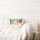 Le dos de l'oreiller a un fond rouge et une inscription en blanc.