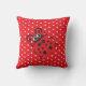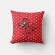 Coussin de rouge et et blanc lumineux de filles de nom, comportant des coccinelles conçues par exclusivement par Sarah Trett. Soyez un grand supplémentaire à la chambre à coucher orientée du rouge ou de la nature de l'enfant.