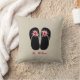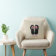 Un coussin pour des professeurs comportant une illustration d'une paire de bascules électroniques noires décorée des pommes rouges. Personnalisez avec votre nom en rouge. Le bord opposé est rouge.