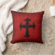 Coussin rouge de velours-regard avec une croix gothique noire là-dessus