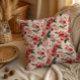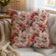 Un motif floral d'hibiscus rouge vif sur un arrière - plan rose doux.