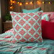 Coussin Rouge sur motif de Damas Turquoise