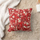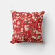 Coussin rouge vif aux fleurs blanches et roses