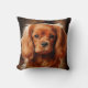Portrait d'un Ruby Cavalier King Charles Spaniel. Le chien est assis sur un tissu doux et orange avec ses pattes bien placées devant lui. Ses grands yeux sombres regardent directement le spectateur, lui donnant un sentiment de chaleur et d'affection. La fourrure du chien est méticuleusement détaillée, montrant sa texture douce et ses vagues fluides. Un cadeau parfait pour les amoureux de Cavalier.