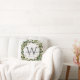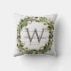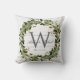 Un mariage personnalisé. Cet élégant coussin de style Farmhouse rustique présente un arrière - plan de texture de shiplap, avec une belle aquarelle verte et une couronne de coton qui encadrent le classique monogramme gris foncé initial. Les prénoms du couple sont écrits sur le monogramme initial dans un magnifique script de calligraphie, avec la date mariage ci-dessous. Le design est le même à l'avant et à l'arrière. Fait un grand cadeau pour les jeunes mariés. Idéal pour votre chambre, votre chaise préférée, un ajout décoratif formel à votre salon, ou juste pour un peu de décoration amusante dans votre chambre familiale. Les couleurs de tous les champs de texte peuvent être modifiées à votre gré. Copyright Anastasia Surridge for Personalized Home Decor, tous droits réservés.