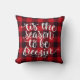Fun Noël réversible jetez l'oreiller dans un arrière - plan plaid de buffle rouge et noir avec "C'est la saison pour être franc" conception de typographie sur un côté et flocon de neige sur l'autre.