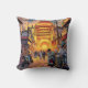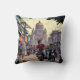 Illustration du centre-ville de Calcutta, capitale et plus grande ville de l'état indien du Bengale-Occidental. A Throw Pillow le dit depuis l'Inde avec une illustration de la rue animée du centre-ville avec des bâtiments, des restaurants, des boutiques et des gens sur leurs motos.