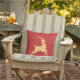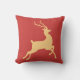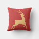 Renne d'or de Noël sautant le coussin extérieur avec un renne rouge de nez fonctionnant gaiement.