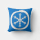 "Azure, un flocon de neige, un environnement d'un serpent en annulo vorant de sa propre queue argent." Le dos du coussin est un motif médiéval qui coordonne les couleurs.