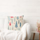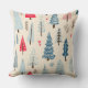 A cozy Scandinavian forest pattern throw pillow featuring hand-drawn trees in soft red, blue, and beige tones. This charming winter woodland design blends autumn warmth and Christmas cheer, perfect for seasonal projects and festive themes. Ideal for those who love modern rustic, minimalist, and cozy holiday styles.