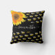 Coussin Script de nom de tournesol jaune noir des abeilles