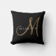Coussin Script élégant de monogramme noir et or