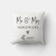 Ce coussin moderne et branché en noir et blanc présente votre nom de famille et votre cool, un script écrit à la main qui dit "M. & Mme", ainsi qu'un coeur griffé. Une tenue de mariage chic et élégante pour les jeunes mariés qui s'adapte parfaitement à tout décor !
