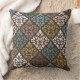 Coussin Scroll Damask Rpt Ptn Teals Browns Gold Crm White
