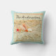 Coussin Seashells Beach mariage aquarelle corail bleu turq