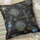 Gold-bordered seashells and starfish in shades from midnight blue to black creates this beautiful marine-life throw pillow pattern that would be perfect for the captain's lounge or stylish beach house decor. A midnight blue watercolor background and gold fleck pattern provides a striking background for this dreamy design. Search ID782 to see the complete range of colors and additional products with this design.