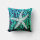Imprimé avec motif d'étoile de mer blanche dans un luxueux motif de sirène bleu vert brillant.