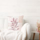An abstract watercolor featuring patterned shapes and a botanical in a palette of maroon and soft calming colors.
