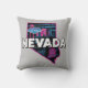 Le design de l'oreiller de style rétro comprend la silhouette de l'état du Nevada avec une ligne d'horizon iconique et l'enseigne Las Vegas.