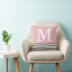 Coussin Simple Rose Bleu Avec Bandes B/W Monogramme