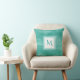 Un carré en marbre simple lance l'oreiller en vert turquoise avec un badge carré blanc moderne que vous pouvez personnaliser en ajoutant votre monogrammed initial à. Il fait partie de la collection Arcadia Subtle Marble Monogram.