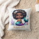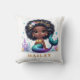 © 2023 Socialite Designs & LICENCORS. Ce coussin magique personnalisable pour enfant de sirène présente un design afro-américain de sirène et une zone de nom personnalisée. Créez un coussin unique et personnalisé pour votre enfant qui célèbre leur individualité et l'amour pour toutes les choses sirènes.