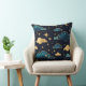 COUSSIN SKI DE NUIT AVEC NUAGES ET ÉTOILES BLEU & OR