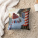 In the morning sunlight, a snowman wearing a red, white, and blue scarf is seen saluting an American flag hanging on a barn