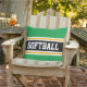 Cette conception sportive et colorée présente du texte sportif SOFTBALL à l'intérieur d'une large bande de centre noir surlignée avec des rayures blanches et jaunes de course contre des rayures extérieures verdoyantes. Le texte et les couleurs de ce design peuvent être personnalisés.