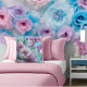 Coussin Soie rose pourpre bleu doux grandes fleurs