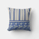 Cet oreiller à jetons coussiné présente des rayures verticales bleues et ivoire qui descendent jusqu'à un motif bleu et ivoire inspiré d'un motif victorien anglais chinois conçu par William Morris. Parfait pour votre décor victorien ou dans un mélange éclectique de bleu et de blanc.
