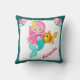 Une douce petite coussin de sirène avec une jolie sirène aux cheveux roses et son poisson rouge pour animal de compagnie, deux petites sirènes aux cheveux roses dans les coins supérieurs, une parties scintillant turquoise "sable" et une option pour personnaliser avec le nom de votre enfant dans le coin (note, le texte peut être supprimé aussi si désiré). Ce mignon coussin de sirène ferait un ajout idéal à la pépinière d'un bébé, à la chambre d'une petite fille, faire un grand cadeau de baby shower personnalisé, ou la décoration pour une fête d'anniversaire à thème de sirène.
