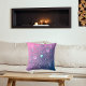 Un bel oreiller à jetons avec un mandala/flocon de neige brillant et luxueux en métal bleu décoré de pierres précieuses sur un arrière - plan rose pastel à violet dégradé.