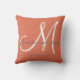Corail personnalisé, coussin décoré d'un monogramme gris et blanc avec des noms de jeunes mariés et date de mariage dans une conception de recouvrement de police de manuscrit sur un arrière - plan de toile IMPRIMÉ d'effet de photo. Elke Clarke© pour MonogramGallery chez Zazzle. Fait un grand cadeau pour nouvellement l'épouse. Grand accessoire à la mode et élégant pour votre chambre à coucher, chaise préférée, en tant que le décor de maison d'amusement dans votre chambre familiale ou addition décorative formelle à votre salon. Customisez avec vos noms, initiale de monogramme et date de mariage.