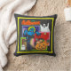 Cette image clipart présente des créatures d'Halloween. Une pleine lune, un fantôme, un citrouille, une sorcière et une pierre tombale sont présentés dans un bloc de couleurs effrayantes. Une bannière avec Halloween et une chauve-souris sont en tête. Une bordure jaune a également été ajoutée à l'avant et à l'arrière pour un effet d'Halloween supplémentaire. Tout cela est présenté sur un fond noir. Ces coussins sont disponibles dans des styles et des tailles variés.
