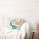 Vibrant seamless summer pattern throw pillow featuring straw hats, sunglasses, tote bags, sunscreen, flip flops, tropical leaves, and flowers on a clean white background. Ideal for beach lovers, vacation fans, tropical style enthusiasts, and anyone who loves sunny summer aesthetics.