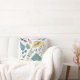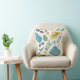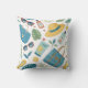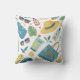 Vibrant seamless summer pattern throw pillow featuring straw hats, sunglasses, tote bags, sunscreen, flip flops, tropical leaves, and flowers on a clean white background. Ideal for beach lovers, vacation fans, tropical style enthusiasts, and anyone who loves sunny summer aesthetics.