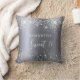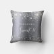 Un coussin pour une chambre de filles Sweet 16, 16e ans. Un arrière - plan faux argent avec de la poussière de parties scintillant fausse. Le texte : Sweet 16 est écrit en blanc avec un grand script de style à la main moderne. Personnalisez et ajoutez un nom.