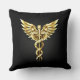Symboles Caduceus polygonaux or sur arrière - plan noir isolé. Basse poly symbole de la médecine.