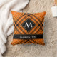 Échantillon de tartan moderne orange et noir halloween. Texte et monogramme personnalisés.