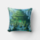 Throw pillow of a Chinese temple castle made entirely of magical green jade. Clean blue waters encircle the structure while silent jade sentinels flank the way to the castle's crystal gates. Legend has it that within the teeming jungles of the country lay hidden the castle of the benevolent, yet enigmatic, Empress Liáo Yù Yù and her mystical throne of glowing jade. Adventurers and treasure seekers, dignitaries and holy men, beggars and businessmen, had all come from the many corners of the world trying their luck to find this mythical place, but only the truly worthy were successful. Their quest was to sit on the glowing throne of jade that once belonged to the Empress, for it is said that it cured you of all your most painful and deathly ailments. To some, the throne even granted eternal life, but, woe to those whose intentions were selfish, for just as they sat on the ancient seat of power, they were never seen again... This artwork was created with ImageFX and upscaled with Leonardo.ai. Additional editing was done offline by me.