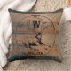 Coussin Texture en bois rustique et monogramme de cerfs su