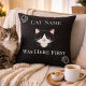 Coussin The Cat Was Here First Name Custom Throw Pillow