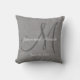 Coussin décoré d'un monogramme gris et blanc personnalisé avec des noms de jeunes mariés et date de mariage dans une police de manuscrit au-dessus de conception sur un arrière - plan de toile gris IMPRIMÉ d'effet de photo. Elke Clarke© pour MonogramGallery chez Zazzle. Fait un grand cadeau pour nouvellement l'épouse. Grand accessoire à la mode et élégant pour votre chambre à coucher, chaise préférée, en tant que le décor de maison d'amusement dans votre chambre familiale ou addition décorative formelle à votre salon. Customisez avec vos noms, initiale de monogramme et date de mariage.