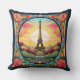 Coucher de soleil parisien Eifel Tower Paris France Floral Throw Pillow Cushion présente un coucher de soleil de style art déco avec la Tour Eifel dans un cadre fleuri et audacieux. Créé par Evco Studio www.zazzle.com/store/evcostudio