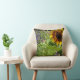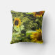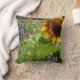 Un beau jardin avec un tournesol doré en pleine floraison, des fleurs sauvages et beaucoup de verdure. Trois tournesols mettent l'accent sur l'arrière du coussin.